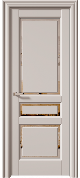 Двери Равенна - классические и в то же время современные. Оригинальный вид формируют вставки из зеркала графит с фацетной обработкой, которые окантовывают полотна дверей на стыке стоевых и филенок. Равенна - серия дверей выполненных по сборочной технологии, с фрезерованными стоевыми, поперечными и филенками. Изготавливаются ПВХ-покрытиями, патиной не декорируются. Толщина полотна 40 мм.