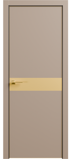 Латунь – универсальный ингредиент украшения интерьера, который прекрасно сочетается с однотонными поверхностями, камнем и деревом. Двери Гранд c латунными вставками и обрамлением из золотой алюминиевой кромки наполнит интерьер теплом и станет его акцентом.