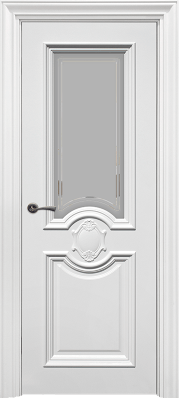 Светлый сатинат с гравировкой придает остекленной двери невероятную нежность и изысканность. Выделяя рисунок патиной и обрамляя дверь декоративными элементами – карнизами, наличниками, подпятниками – вы получите роскошный классический образ двери.