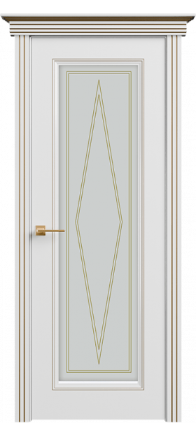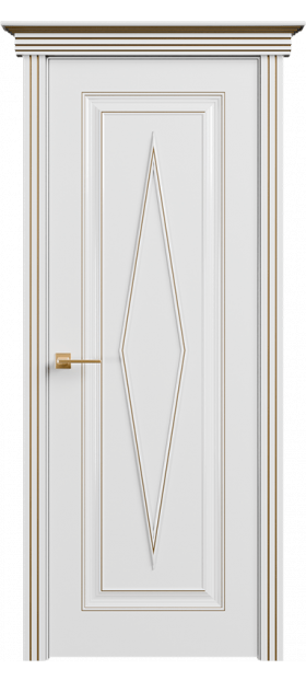 Новые двери с багетом Рикардо - это строгие формы, пропорции и симметричность. Они покрываются ПВХ-шпоном (толщина полотна - 35 мм) и также Эмалью (толщина полотна 40 мм). Патина: Золото по контуру, Серебро по контуру, без наценки.