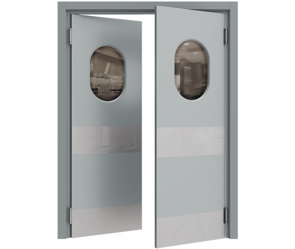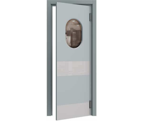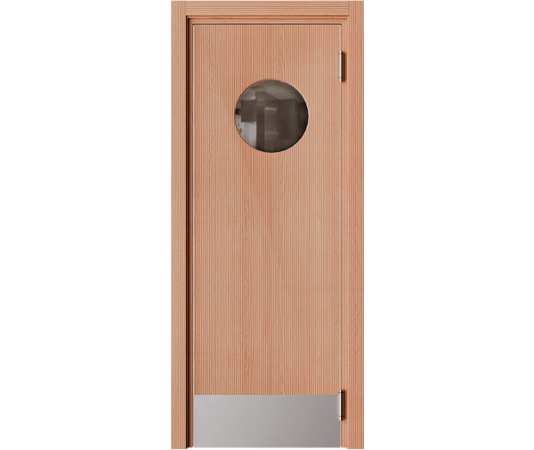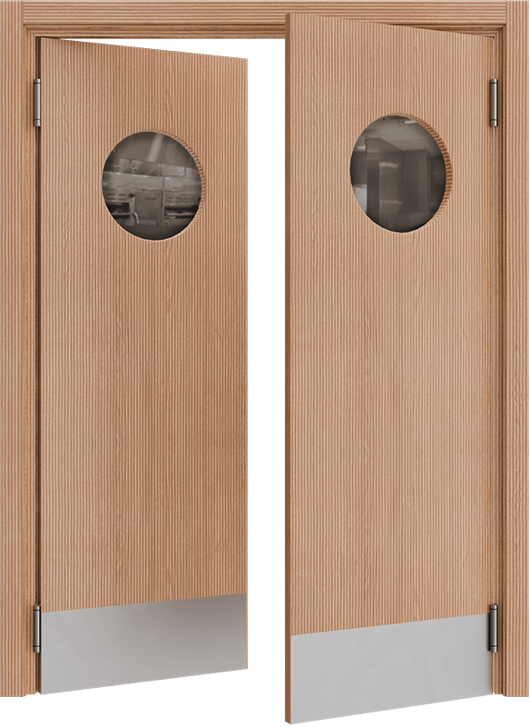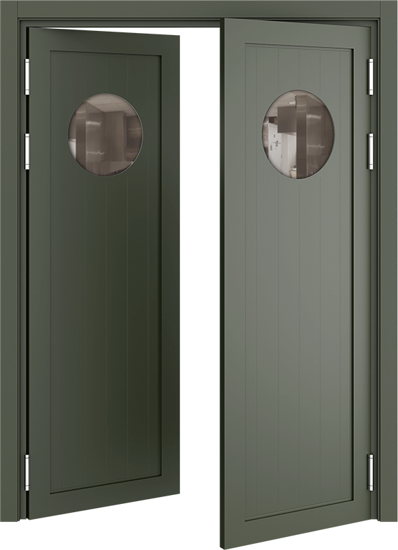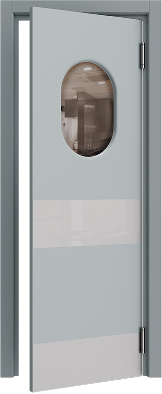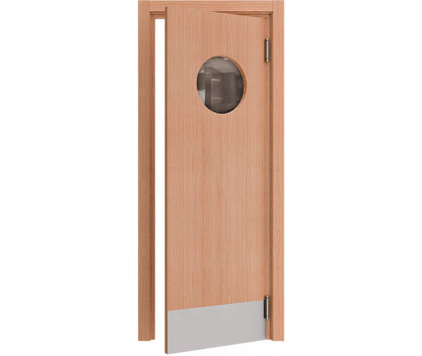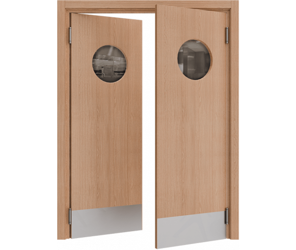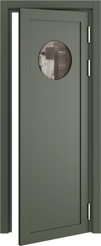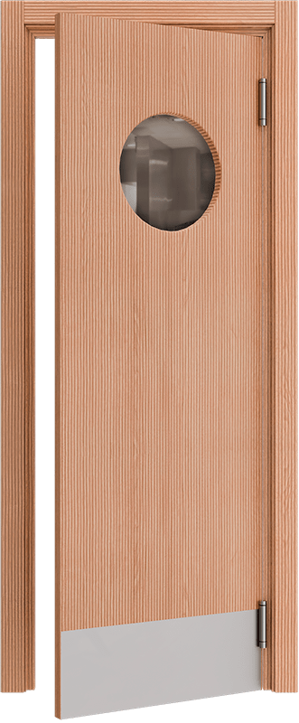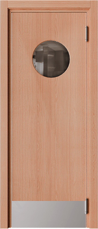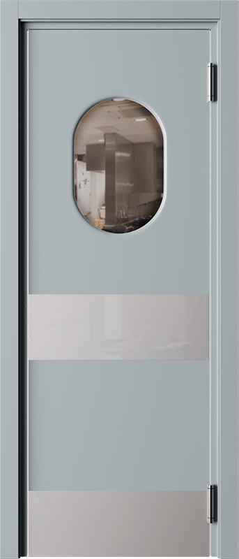 В зависимости от модели, в полотне межкомнатной двери может быть стеклянный иллюминатор. Он необходим в условиях, когда требуется обзор соседнего помещения. Например, наличие иллюминатора в двери между кухней и залом ресторана помогает узнать о готовности блюд, не входя в пищевой блок.