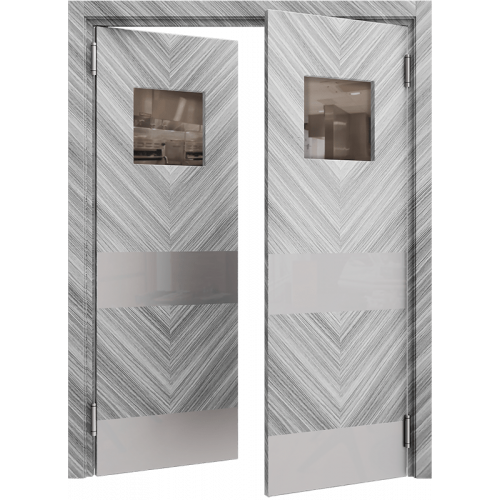 Барные двери актуальны в помещениях с повышенной проходимостью для более удобного доступа персонала к техническим комнатам, например с бара в зону кухни. Часто бывает необходимым, для обзора соседнего помещения, чтобы дверь была остекленная и стилистически оформлена. Стекло толщиной 4 мм круглой, овальной или квадратной формы, на выбор: сатинат светлый, бронзовый, графит или прозрачное стекло. Устанавливается на двери толщиной 40 мм в покрытии Эмаль (любой цвет по каталогу RAL Classic K7) и толщиной 35 мм в ПВХ-покрытиях.