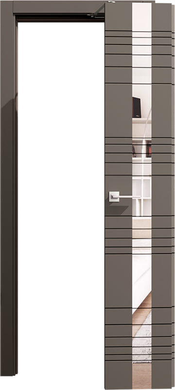 Двери Компакт оснащены механизмом складывания: дверное полотно состоит из двух частей. При открывании эти части складываются по принципу «книжки» и прижимаются к стене. В результате дверь compack занимает минимум места, что особенно важно в узких коридорах, небольших комнатах или в условиях ограниченного метража.