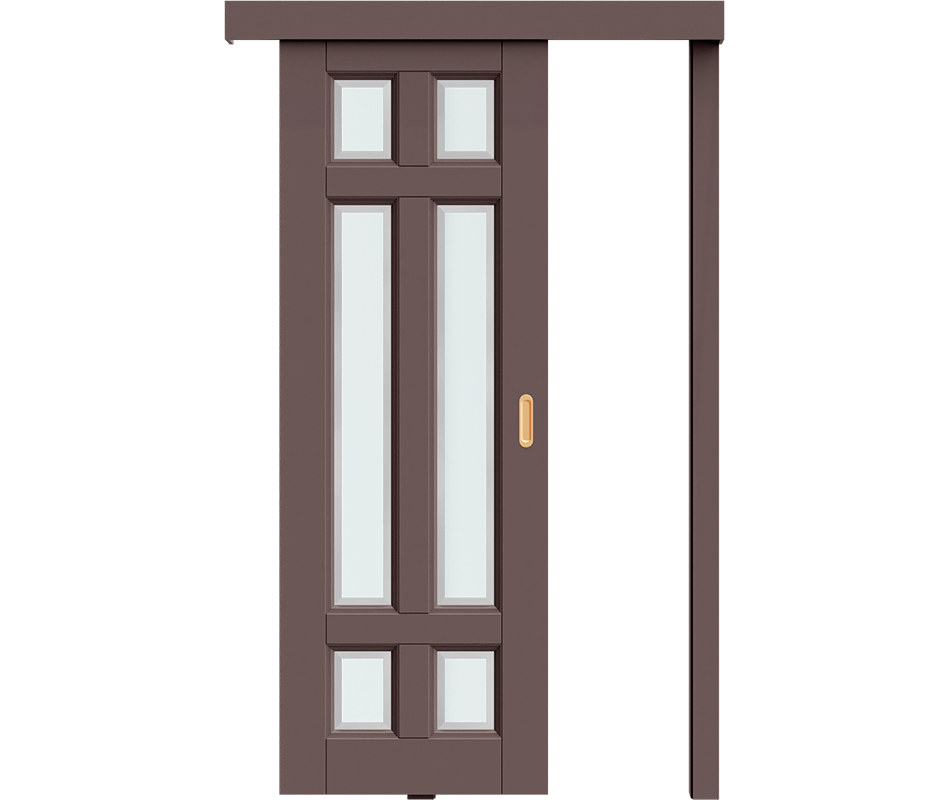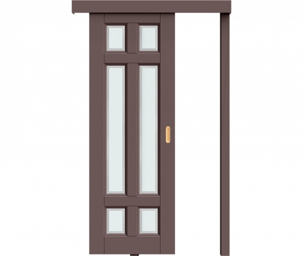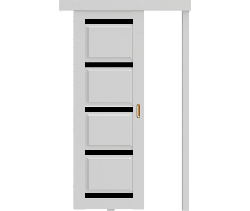 Опционально в комплектации может присутствовать кассета. Это специальный короб, который монтируется в стену или перегородку, если по проекту предусмотрено открывание двери не вдоль стены, а непосредственно внутрь проёма. В этом случае межкомнатный купейный механизм незаметен: на виду только полотно, когда дверь закрыта.