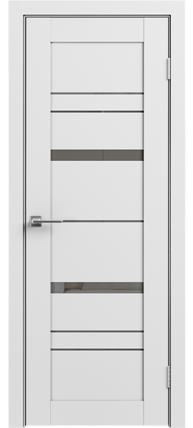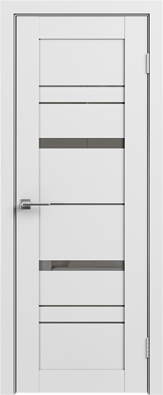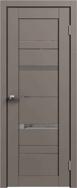 LE — серия дверей современного стиля — входит в СКЛАДСКУЮ ПРОГРАММУ 3 фабрики GEONA. Царговая конструкция дверного полотна имеет толщину 35 мм и покрывается ПВХ. Остекление — зеркало графит.