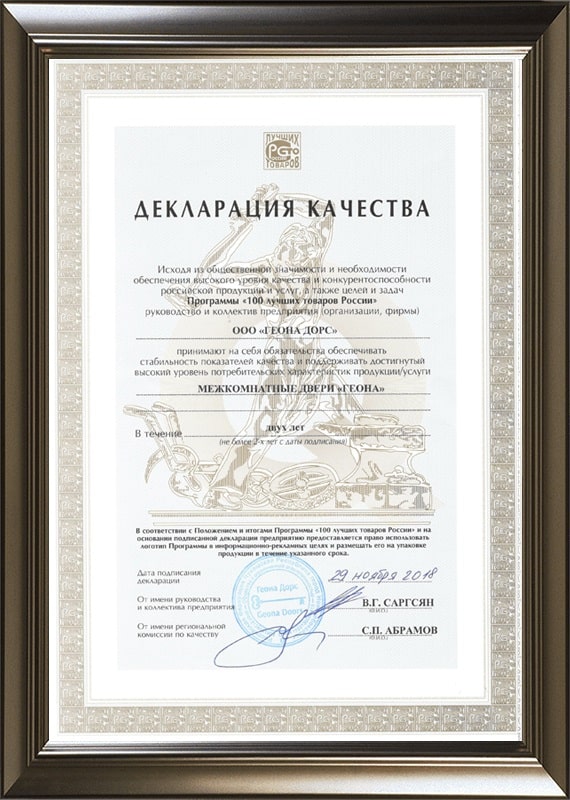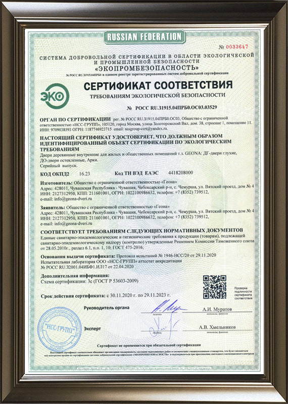 Сертификат ГОСТ на межкомнатные двери и арки