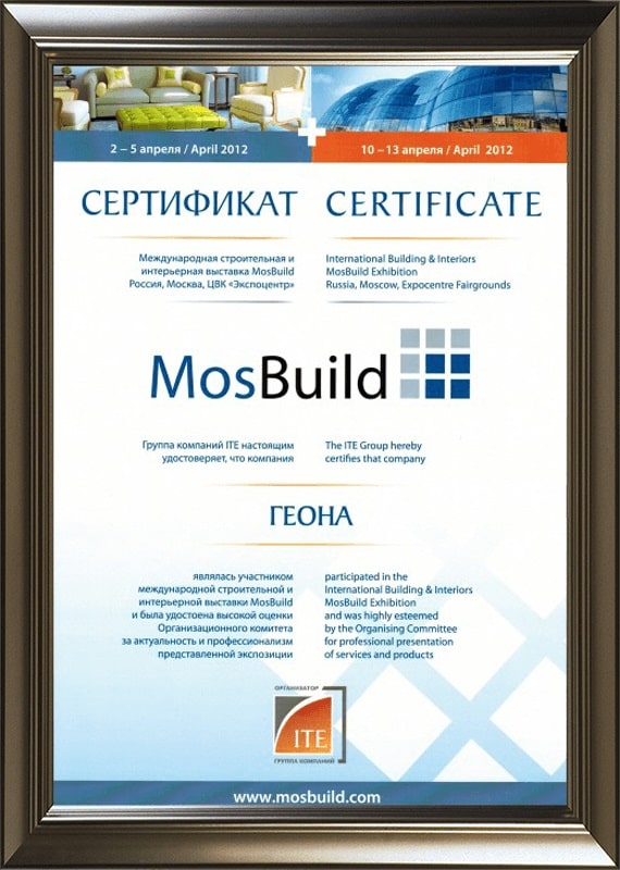 Сертификат участника MosBuild 12