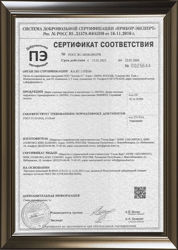 Сертификат соответствия требованиям ГОСТ на металлические двери